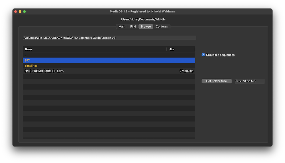 MediaDB is an essential tool for small post production houses and freelancers who work with large quantities of hard drives and discs. The app helps create a database of all the hard drives and files in use. It allows you to search for files and browse directory trees while the drives are offline. MediaDB can also be used to create an RCP file for DaVinci Resolve from an EDL during the film conforming process.